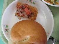 今日は、油で揚げて、夏野菜のトマトや玉ねぎを使って、さっぱりとしてドレッシングで和えたものをかけています。