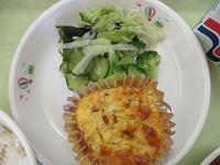 今日の献立は、コッペパン・アプリコットジャム・ミートスパゲティ・豆腐の照り焼きミートローフ・レモンドレッシングサラダ・牛乳です。