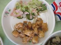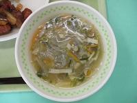 今日の献立は、ごはん・レタスの中華スープ・夏野菜の酢豚・にらともやしのナムル・牛乳です。