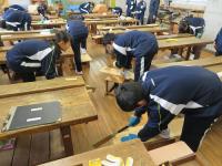 2018年11月22日 11時15分1年生技術は木材加工を行っています。本立てやCDラック、小物入れなど自分で設計し、現在は材料の切断に入りました。家庭科は調理実習です。今回のメニューは「チキンソテー」と「りんご煮」です。女子の指示を受けながら男子が作業する様がほほ笑ましく感じました。