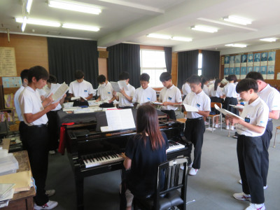 3年1組は、合唱コンクールの練習を始めています。各パートに分かれて歌の練習をしました。3年2組は、社会科の授業で、人や物、お金や情報などが国境を越えて広がっていく「グローバル化」について学習しました。